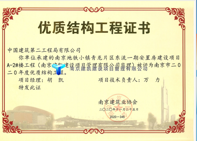 2021年榮獲優(yōu)質(zhì)結(jié)構(gòu)項(xiàng)目—南京地鐵小鎮(zhèn)青龍片區(qū)東流一期安置房建設(shè)項(xiàng)目