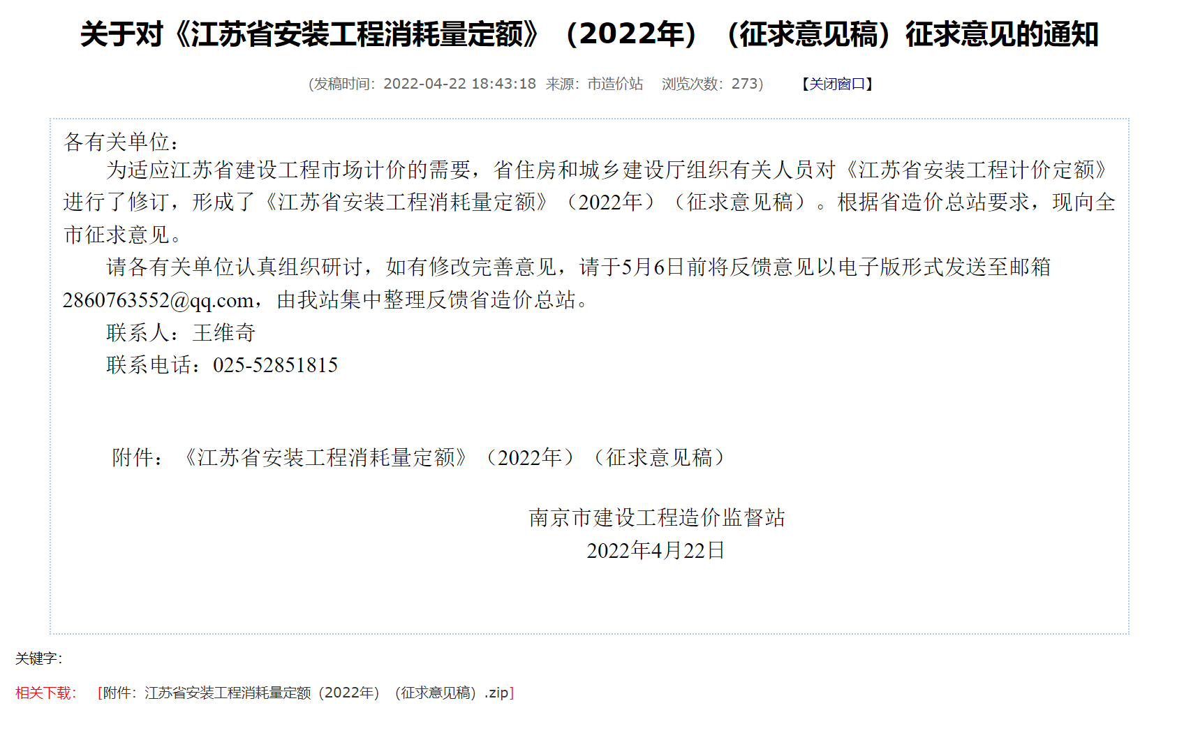 轉(zhuǎn)發(fā)關(guān)于對《江蘇省安裝工程消耗量定額》(2022年) (征求意見稿) 征求意見的通知,其下載鏈接如下所示:
