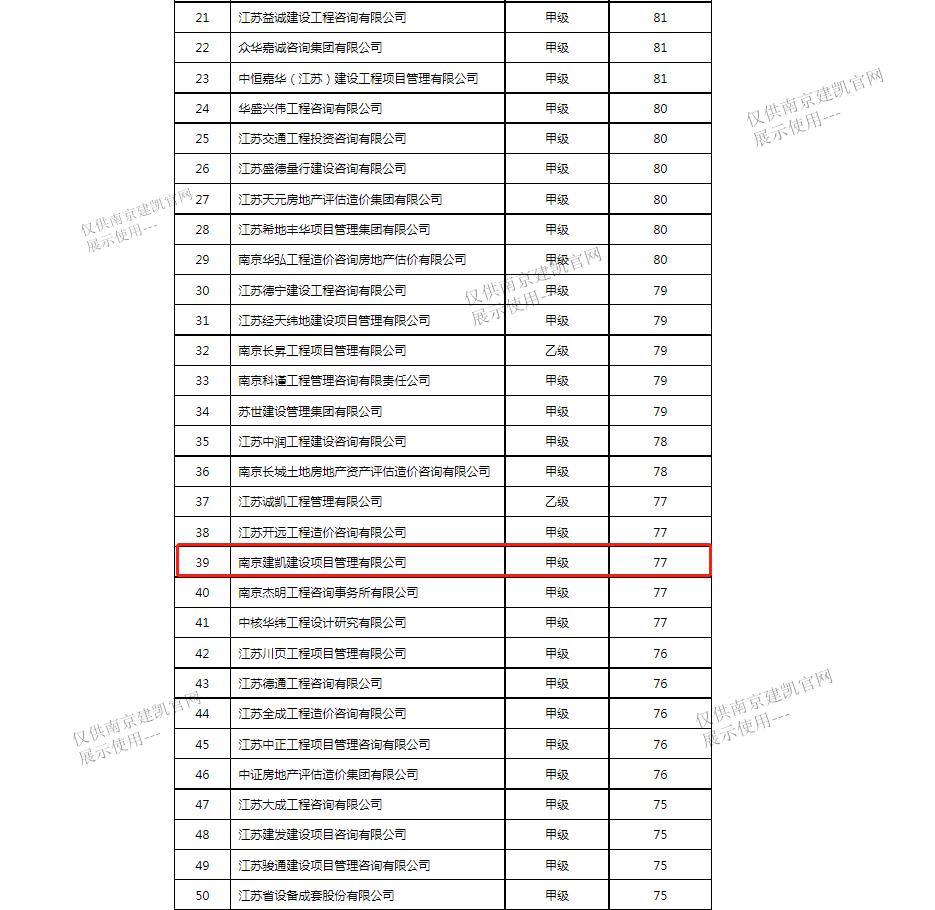 恭喜我司入選“南京市2022年四季度工程造價(jià)咨詢企業(yè)信用分值排名前20%企業(yè)名單”