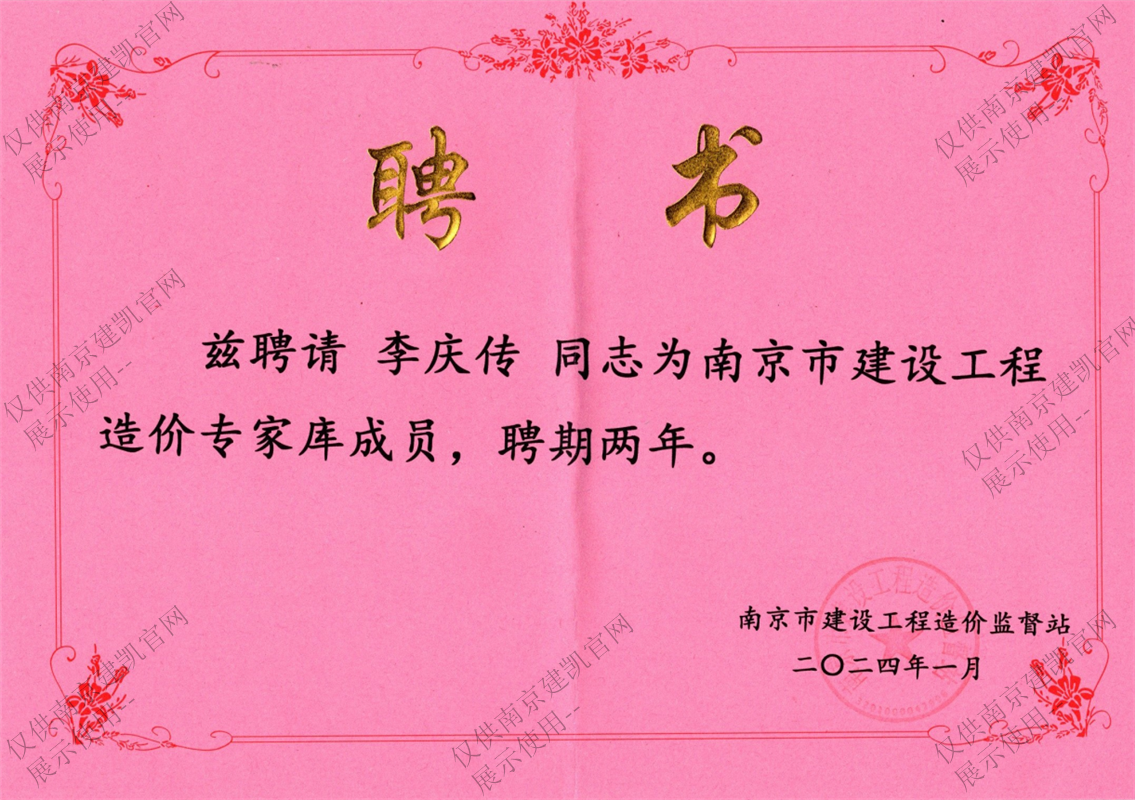 恭喜我司李慶傳同志入選“南京市建設(shè)工程造價(jià)專(zhuān)家?guī)斐蓡T”