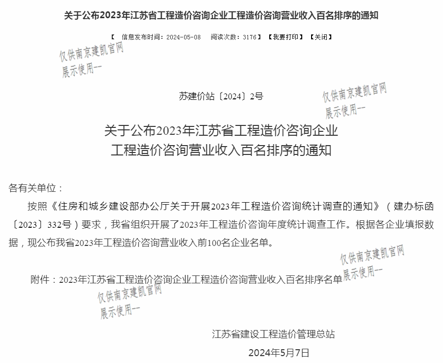 熱烈祝賀我司榮獲“2023年江蘇省工程造價(jià)咨詢企業(yè)工程造價(jià)咨詢營(yíng)業(yè)收入前百名企業(yè)”