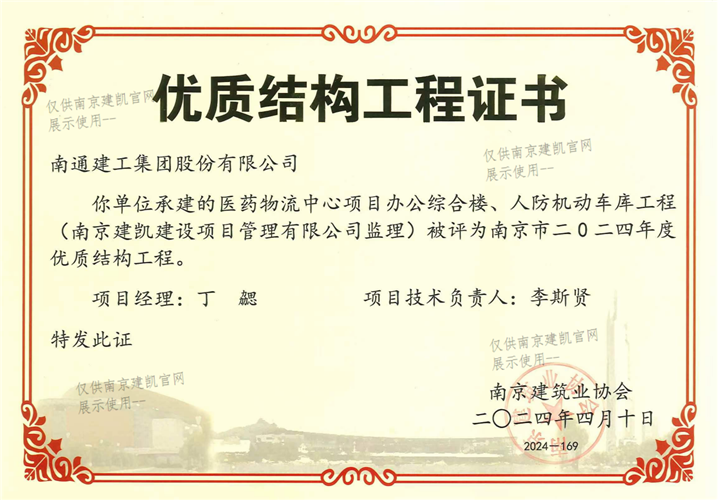 南京市二0二四年度優(yōu)質(zhì)結(jié)構(gòu)工程(醫(yī)藥物流中心項(xiàng)目辦公綜合樓、人防機(jī)動(dòng)車(chē)車(chē)庫(kù)工程)