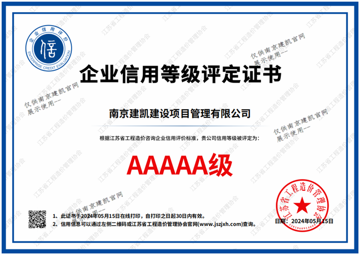 企業(yè)信用等級(jí)評(píng)定證書(shū)AAAAA級(jí)