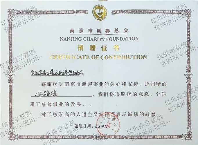 南京市慈善總會(huì)捐贈(zèng)證書(shū)